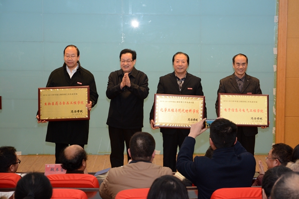 2015年,我校以“三嚴三實”專題教育為載體,以黨建為龍頭,以“三早一晚”及學風示范工程為抓手,以大學生創(chuàng)新創(chuàng)業(yè)為突破口,不斷深化“以學生為本”的工作理念,圓滿完成了各項工作任務,取得了較好成績。經(jīng)學校研究,生物醫(yī)藥與食品工程學院等3個學院被評為學生工作考核先進集體,經(jīng)濟與管理學院等3個學院被評為畢業(yè)生就業(yè)工作先進集體,化學工程與現(xiàn)代材料學院等3個學院被評為公寓管理工作先進學院,王秀絨等28人被評為優(yōu)秀班主任,張俊華等8人被評為學生管理先進個人,李川川等11人被評為學生工作考核優(yōu)秀個人,敬曉明等14人被評為公寓管理工作先進個人,張亞強等13人被評為畢業(yè)生就業(yè)工作先進個人,張善紅等6名輔導員和梁豐等23名班主任的工作日志被評為優(yōu)秀學生工作日志,蘇鐵柱等人的17篇論文被評為學生工作優(yōu)秀論文。