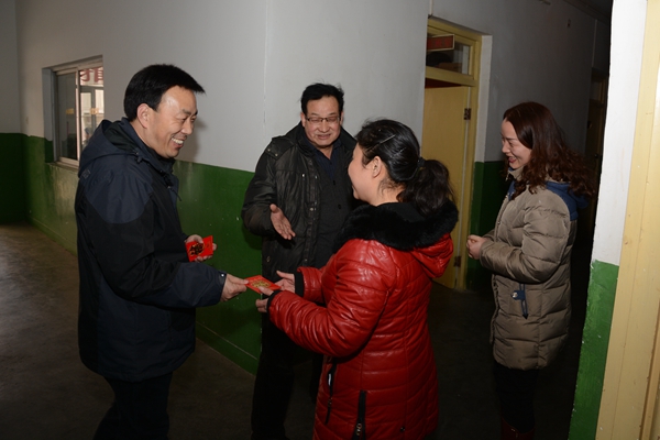 在黨政辦公室、保衛(wèi)處、后勤保障處負責人的陪同下,魏書堂、彭虎軍一行先后前往北新街校區(qū)、丹江校區(qū)各處門衛(wèi)、教學(xué)樓、公寓、圖書館、體育場值班室,后勤保障處公寓服務(wù)中心、水電班,保衛(wèi)處警務(wù)室、監(jiān)控室等一線崗位,與工作人員親切握手,代表學(xué)校黨政向大家拜年,對除夕之夜仍堅守在工作崗位上的同志表示感謝,并親手送上節(jié)日慰問品。在每一個慰問地點,校領(lǐng)導(dǎo)都詳細詢問了各部門的工作情況,要求每位工作人員在春節(jié)期間一定要把安全穩(wěn)定放在首位,保證全校師生度過一個溫暖、祥和的春節(jié)。