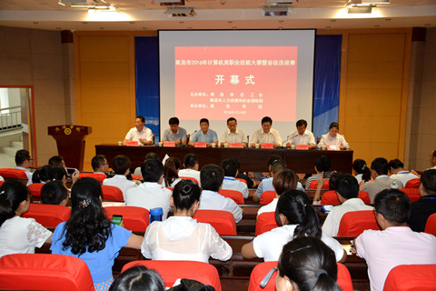 7月16日,由我校承辦的商洛市2016年計算機類職業(yè)技能大賽在我校舉行。商洛市人大常委會副主任、市總工會主席李選良宣布大賽正式開始。校黨委副書記、副校長范新會,商洛職業(yè)技術(shù)學(xué)院黨委書記、商洛市人力資源和社會保障局局長楊萌出席開幕式。我校教務(wù)處、繼續(xù)教育學(xué)院及商洛市總工會、商洛市人力資源和社會保障局等相關(guān)負責(zé)人參加開幕式。大賽開幕式由商洛市總工會常務(wù)副主席張新發(fā)主持。