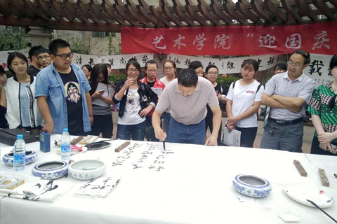 活動(dòng)中,藝術(shù)學(xué)院美術(shù)學(xué)專業(yè)教師及學(xué)生30余人以筆代言,以畫(huà)為媒,通過(guò)一幅幅形式多樣,立意新穎的書(shū)畫(huà)作品,抒發(fā)自己對(duì)祖國(guó)、對(duì)傳統(tǒng)文化的熱愛(ài)之情?;顒?dòng)期間共創(chuàng)作書(shū)法、國(guó)畫(huà)等作品40余幅,引來(lái)眾多師生觀摩學(xué)習(xí)。