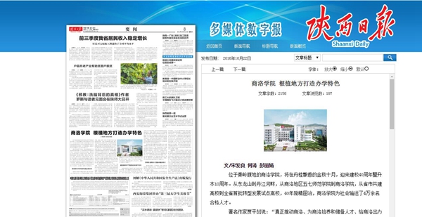 陜西日?qǐng)?bào)——商洛學(xué)院 根植地方打造辦學(xué)特色