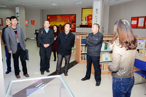 在王思懷等的陪同下,王軍民一行參觀了我校商洛紅色文化資料館、商洛文化暨賈平凹研究中心、藝術(shù)展廳等處。