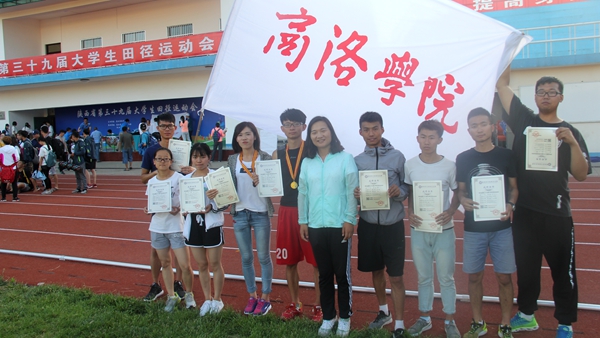 陜西省第39屆大學生田徑運動會于5月25日至27日在西安體育學院舉辦。我校10名運動員在團長朱書祥、教練楊艷的帶領下組隊參賽。經過三天的激勵角逐,我校賈小龍獲得男子本科組十項全能第一名,唐少妮獲得女子本科組三級跳遠第三名、跳遠第四名,朱遲超獲得十項全能第四名,張佳獲得八百米第四名,黃順堯獲得四百米第五名的好成績成績。男子4×400米首次闖入決賽。