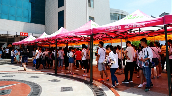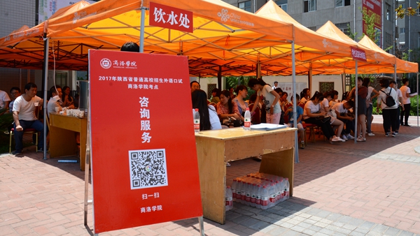 6月18日,是陜西省普通高校招生外語(yǔ)口語(yǔ)考試日。上午7:30開(kāi)始,1541名考生陸續(xù)從商洛各地趕赴我校,在學(xué)生志愿者的引導(dǎo)下,有序排隊(duì)進(jìn)入考場(chǎng)參加考試,家長(zhǎng)則在指定區(qū)域休息等候。