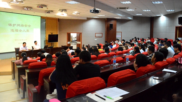 ——對全校范圍內(nèi)的網(wǎng)絡安全漏洞進行大排查,并邀請西安交通大學博士生導師張德運教授來校作了題為《保護網(wǎng)絡安全,造福全人類》的報告。