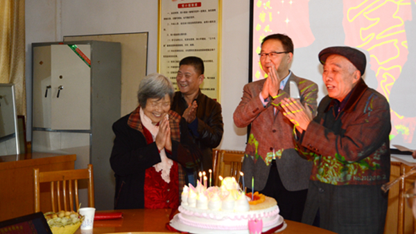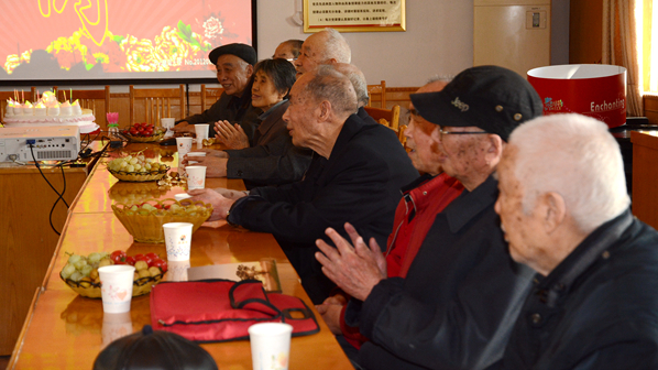 校領(lǐng)導(dǎo)在祝壽會(huì)上和老壽星們親切交談,了解他們現(xiàn)在的生活情況和身體狀況,和他們一起點(diǎn)蠟燭、切蛋糕,祝福他們健康長壽、幸福美滿。