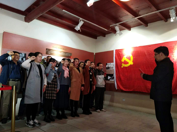 為進(jìn)一步學(xué)習(xí)貫徹黨的十九大精神,提高馬克思主義學(xué)院全體教師的思想政治水平,11月4日,馬克思主義學(xué)院全體教師赴藍(lán)田鄂豫陜蘇維埃政府葛牌鎮(zhèn)紀(jì)念館和九間房鎮(zhèn)汪峰故居開展“不忘初心、牢記使命”主題社會(huì)實(shí)踐活動(dòng),將兩處紅色遺跡確立為“思政教師社會(huì)實(shí)踐研修基地”和“思想政治理論課第二課堂”,并舉行了掛牌儀式。全體教師在黨旗面前重溫入黨誓詞,深切感悟作為一個(gè)共產(chǎn)黨人不能忘記的“初心”和必須牢記的“使命”。
