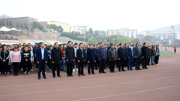 3月26日,晨曦微露、旭日東升,在學(xué)校體育場國旗臺,我校舉行了隆重的升國旗儀式。校領(lǐng)導(dǎo)龍治剛、范新會、王思懷、魏書堂、彭虎軍、劉寶盈、劉勇,黨委委員王新軍、李超、楊存典、張向東,各職能部門、馬克思主義學(xué)院、繼續(xù)教育學(xué)院、體育教學(xué)部全體教職工,全??萍壱陨细刹?,馬克思主義學(xué)院、經(jīng)管學(xué)院學(xué)生1300余人參加升旗儀式。