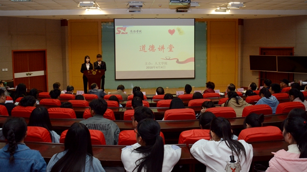 為進(jìn)一步培育和踐行社會(huì)主義核心價(jià)值觀,大力宣傳學(xué)習(xí)道德模范和身邊好人的感人事跡,增強(qiáng)思想政治工作實(shí)效性,我校決定開辦“道德講堂”,每月一期,由各二級(jí)學(xué)院輪流負(fù)責(zé)舉辦。4月4日,由人文學(xué)院負(fù)責(zé),以“贈(zèng)人玫瑰,手有余香”為主題的第一期“道德講堂”順利舉辦。紀(jì)委書記王思懷出席活動(dòng),宣傳部負(fù)責(zé)人及各二級(jí)學(xué)院黨總支書記參加活動(dòng)。