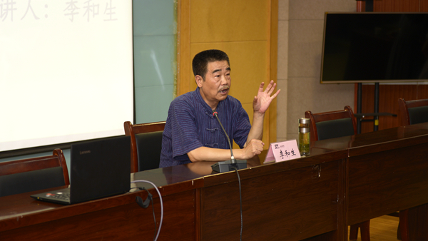6月28日下午,由我校和商洛市文廣新局主辦,商洛市群眾藝術(shù)館、商洛市文化傳承研究會(huì)承辦的商洛市“群星之光”2018三區(qū)人才培養(yǎng)書法講座進(jìn)校園活動(dòng)在我校舉辦。西安市書法家協(xié)會(huì)副主席李和生應(yīng)邀為我校師生作了題為《書法漫談》的學(xué)術(shù)報(bào)告。商洛市委常委、副市長(zhǎng)武文罡,商洛市文廣新局局長(zhǎng)、黨組書記楊長(zhǎng)江,商洛市群眾藝術(shù)館館長(zhǎng)王海青、副館長(zhǎng)張文華等出席了報(bào)告會(huì)。來自我校書法協(xié)會(huì)、藝術(shù)學(xué)院、人文學(xué)院的師生和各界書法愛好者共130余人聆聽了報(bào)告。報(bào)告會(huì)由楊長(zhǎng)江主持。