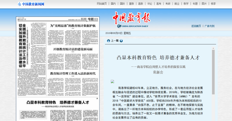 在應(yīng)用型人才培養(yǎng)的探索實(shí)踐過程中,商洛學(xué)院始終堅(jiān)持正確的政治方向,傳承優(yōu)良的辦學(xué)傳統(tǒng),發(fā)揚(yáng)“自強(qiáng)不息,止于至善”的大學(xué)精神,堅(jiān)持立德樹人根本任務(wù),服務(wù)社會(huì)。2017年,學(xué)校被國(guó)家發(fā)改機(jī)構(gòu)、國(guó)家教育部門、人社部門確定為產(chǎn)教融合發(fā)展工程應(yīng)用型高校。如今,學(xué)校在轉(zhuǎn)型發(fā)展方面所取得的經(jīng)驗(yàn)也被作為典型案例在各高校中進(jìn)行推廣。