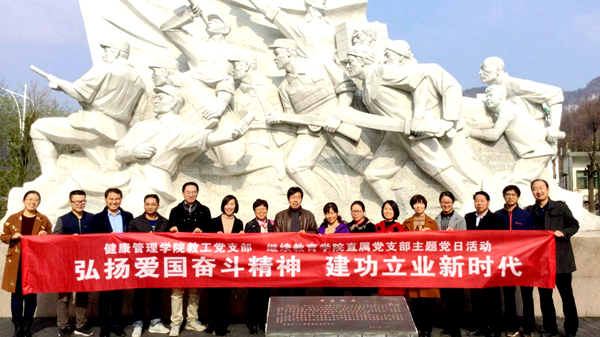 為深入學習貫徹習近平總書記關于弘揚愛國奮斗精神的重要指示,教育引導廣大黨員自覺踐行愛國奮斗精神,做新時代的奮斗者,11月10日至17日,我校經管學院黨總支、健康管理學院黨總支教工黨支部和繼續(xù)教育學院直屬黨支部、機關一黨總支第四黨支部、化學工程與現(xiàn)代材料學院黨總支分別組織黨員及部分教職工開展了“弘揚愛國奮斗精神,建功立業(yè)新時代”主題黨日活動。