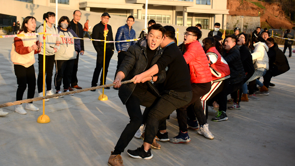 為了扎實(shí)推進(jìn)“陽光體育運(yùn)動(dòng)”,增強(qiáng)集體凝聚力,根據(jù)《商洛學(xué)院2018年冬季健身活動(dòng)方案》安排,11月19日至20日,我校在教學(xué)綜合樓前舉行了一場(chǎng)激烈的冬季拔河比賽。校黨委委員、教務(wù)處處長(zhǎng)李超,團(tuán)委、體育教學(xué)研究部等相關(guān)部門負(fù)責(zé)人參加了活動(dòng)。