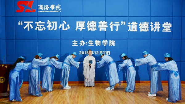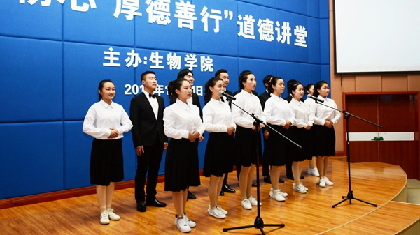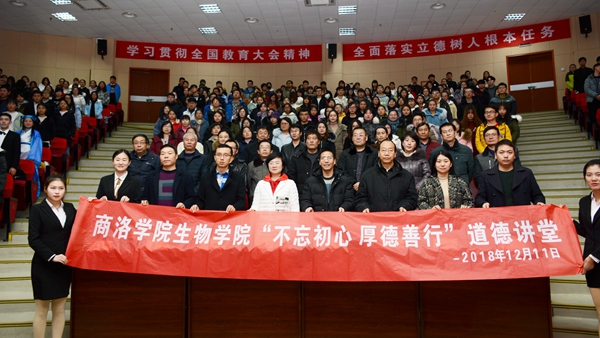 12月11日晚,生物學院在圖書館二樓報告廳舉辦了以“不忘初心 厚德善行”為主題的道德講堂。宣傳部、校團委、教務處相關人員,生物學院全體教師、學生代表及各學院團員代表參加了活動。