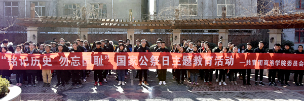 在莘子苑,學(xué)生會、新青年通訊社的學(xué)子們伴隨著雄壯的國歌聲,全體齊唱中華人民共和國國歌,并集體默哀一分鐘,哀悼罹難的同胞。學(xué)生代表郝志杰作主題發(fā)言。他說,作為當(dāng)代大學(xué)生,應(yīng)學(xué)習(xí)歷史,反思?xì)v史,牢記歷史,勿忘國恥,決不能忘卻歷史,忘卻苦難,還要立志成才,學(xué)好扎實本領(lǐng),自覺把個人的理想追求融入國家和民族的事業(yè)中,做社會主義建設(shè)者和接班人。隨后,參加活動的全體人員還一起閱讀愛國書籍,從書中回顧民族歷史,增強愛國熱情,并紛紛在“銘記歷史 勿忘國恥”的橫幅上簽字表態(tài),表明他們不忘歷史、愛國奮進(jìn)的堅定決心。