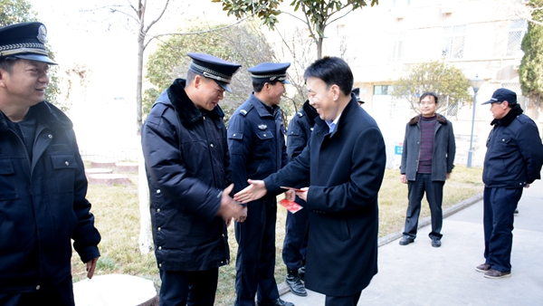 爆竹聲聲辭舊歲,春風(fēng)送暖迎新年。2月4日,在農(nóng)歷除夕,副校長魏書堂、黨委副書記彭虎軍深入我校北新街校區(qū)和丹江校區(qū),看望慰問寒假和春節(jié)期間仍然堅(jiān)守在工作一線的教職員工,為他們送上節(jié)日問候和新春祝福。黨委辦公室·院長辦公室、保衛(wèi)處、后勤保障處、丹江校區(qū)管理處等相關(guān)職能部門負(fù)責(zé)人參加了慰問活動。