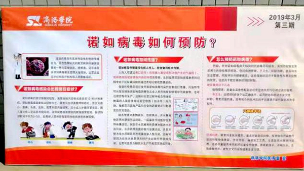 ——深入開(kāi)展傳染病防控知識(shí)的宣傳教育。在開(kāi)學(xué)初進(jìn)行學(xué)生全員體檢和傳染病防治知識(shí)宣傳工作的基礎(chǔ)上,針對(duì)近期我省發(fā)生諾如病毒感染性腹瀉疫情,及時(shí)組織醫(yī)務(wù)人員開(kāi)展諾如傳染病防治知識(shí)宣傳,制作宣傳展板,更新健康教育專欄等,廣泛宣傳諾如病毒防治知識(shí),提高師生對(duì)諾如病毒的認(rèn)識(shí)和預(yù)防能力。同時(shí),認(rèn)真落實(shí)“學(xué)生晨、午檢,因病缺課登記報(bào)告”制度,嚴(yán)格執(zhí)行患病學(xué)生病愈返校合格證明管理規(guī)定。