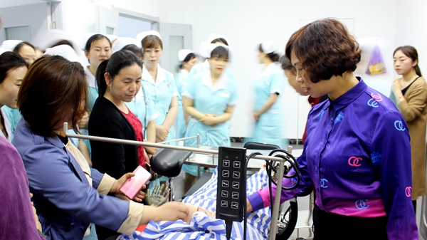 啟動(dòng)儀式后,商洛市中心醫(yī)院50余名護(hù)士長(zhǎng)參觀了我校護(hù)理學(xué)專業(yè)實(shí)訓(xùn)中心,并與相關(guān)教師進(jìn)行了深入交流。