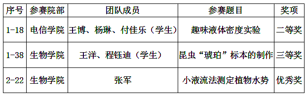 我校2019年陜西省科學實驗展演大賽獲獎項目一覽表