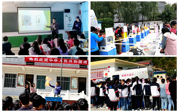 為扎實(shí)踐行2019年全國(guó)科普日“禮贊共和國(guó)、智慧新生活”活動(dòng)主題,進(jìn)一步推進(jìn)“雙百工程”結(jié)對(duì)幫扶丹鳳縣工作,我校師生繼9月11日在蔡川鎮(zhèn)九年制學(xué)校成功開(kāi)展科普公益活動(dòng)后,9月26日,又將“科普大篷車(chē)”開(kāi)進(jìn)丹鳳縣紅色革命熱土——庾嶺鎮(zhèn),為庾嶺中學(xué)300余名師生帶去了一場(chǎng)精彩的“鄉(xiāng)村流動(dòng)科技館”校園展演。
