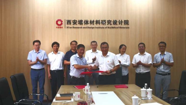 8月28日,校長范新會、副校長王新軍帶領(lǐng)科技處、化材學(xué)院負(fù)責(zé)人前往中國建材西安墻體材料研究設(shè)計(jì)院有限公司考察交流并簽署戰(zhàn)略合作協(xié)議。中國建筑材料科學(xué)研究總院黨委書記、院長王益民,黨委委員、副院長、中國建材西安墻體材料研究設(shè)計(jì)院院長馬明亮,中國建材西安墻體材料研究設(shè)計(jì)院黨委書記、常務(wù)副院長唐玉嬌,副院長權(quán)宗剛參加座談交流并出席簽約儀式。范新會和馬明亮代表雙方簽訂戰(zhàn)略合作協(xié)議。