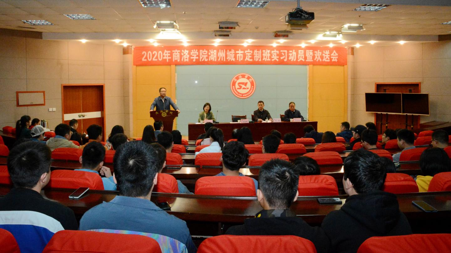 會上,教務(wù)處負責(zé)人對湖州實習(xí)相關(guān)工作作了詳細安排,并為2020年商洛學(xué)院湖州城市定制班首批實習(xí)學(xué)生授予“實習(xí)先鋒隊”旗幟。學(xué)生處負責(zé)人作了赴湖州實習(xí)擇業(yè)、就業(yè)動員。實習(xí)學(xué)生代表、化材學(xué)院材料1702班王陽同學(xué)作了表態(tài)發(fā)言。