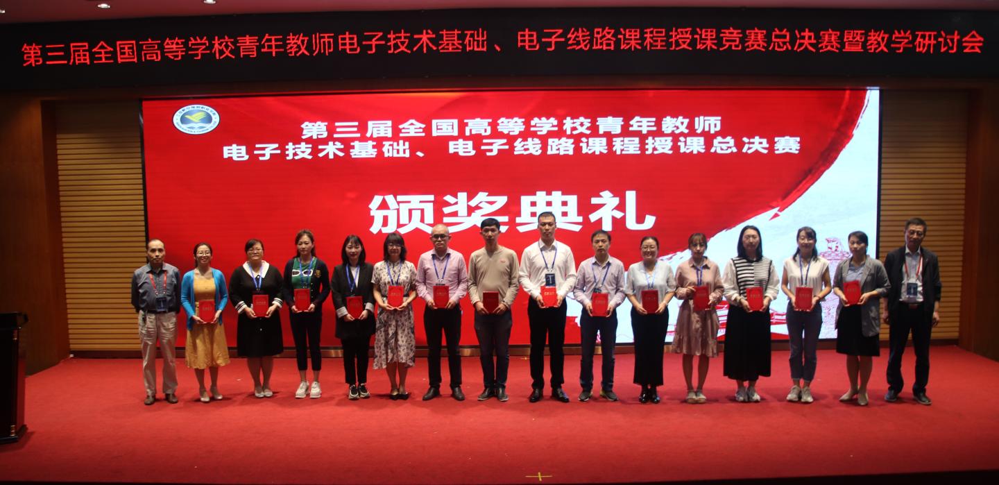 全國高等學(xué)校青年教師電子技術(shù)基礎(chǔ)、電子線路課程授課競賽兩年舉行一次,賽事分為預(yù)賽和決賽兩個階段,設(shè)置模擬電子技術(shù)基礎(chǔ)、數(shù)字電子技術(shù)基礎(chǔ)、電子線路Ⅰ(低頻)、電子線路Ⅱ(高頻)、數(shù)字電路與邏輯設(shè)計等五門課程。自2020年7月開始,全國六大賽區(qū)共293余位教師參加了預(yù)賽,我校3位教師參加預(yù)賽并取得西北賽區(qū)一等獎。經(jīng)過評審,91位教師進入決賽,其中89名教師參加了現(xiàn)場決賽。決賽分為3組,參賽教師通過抽簽確定授課內(nèi)容,進行20分鐘現(xiàn)場教學(xué)展示,邀請國內(nèi)相關(guān)課程知名專家組成評委團現(xiàn)場打分。經(jīng)過激烈角逐,決賽階段共評選出一等獎30名、二等獎33名、三等獎26名。