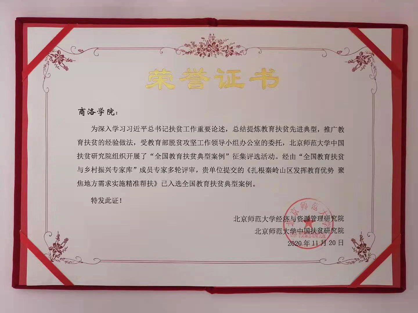受教育部脫貧攻堅(jiān)領(lǐng)導(dǎo)小組辦公室委托,北京師范大學(xué)中國教育扶貧研究院于2020年組織開展了“全國教育扶貧典型案例”征集評選活動。此次評選活動共有全國千余所高校、中小學(xué)及地方教育行政部門參加,最終選出全國教育扶貧典型案例235項(xiàng)。我校“雙百工程”辦公室提交的《扎根秦嶺山區(qū)發(fā)揮教育優(yōu)勢 聚焦地方需求實(shí)施精準(zhǔn)幫扶》入選全國教育扶貧典型案例,并于近期正式獲頒證書。我校也因此成為陜西省獲此殊榮的2所地方本科院校之一。