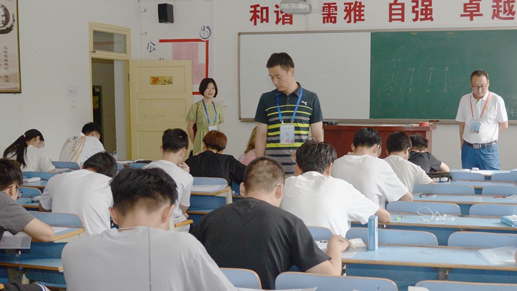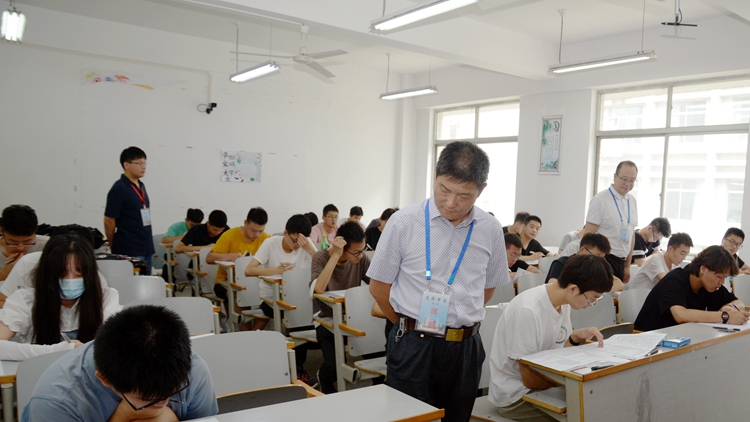 為加強期末考試的組織管理和考風(fēng)建設(shè),7月6日,校長范新會、黨委副書記劉勇,副校長劉寶盈、郭瑾在教務(wù)處相關(guān)負責(zé)人的陪同下,深入各考場檢查考試工作。