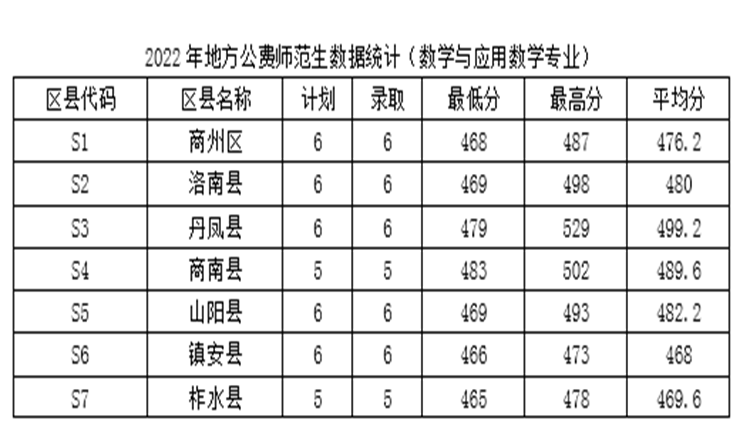 2022年我校面向全省招收定向商洛市7個區(qū)、縣就業(yè)的新生80人,其中漢語言文學(xué)專業(yè)40人,數(shù)學(xué)與應(yīng)用數(shù)學(xué)專業(yè)40人。各區(qū)縣生源地招生錄取人數(shù)占比分布平均,商州區(qū)、洛南縣、丹鳳縣、山陽縣、鎮(zhèn)安縣分別為15%,商南縣、柞水縣分別為12.5%。