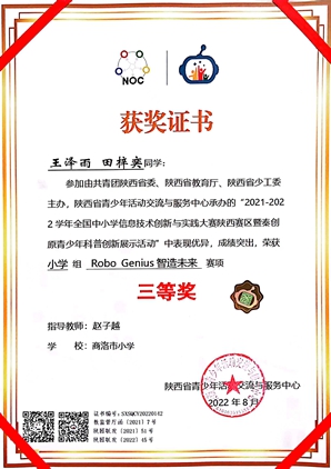 由共青團陜西省委、陜西省教育廳、陜西省少工委主辦的2021-2022學年全國中小學信息技術創(chuàng)新與實踐(NOC)大賽陜西賽區(qū)分賽結果于近日揭曉。經濟管理學院教師趙子越指導的商洛市小學團隊獲得陜西賽區(qū)人工智能類Robo Genius智造未來賽項小學組省級三等獎。這是在我校公眾科學素質與創(chuàng)新發(fā)展研究中心指導下,該校學生首次取得省級人工智能類賽事獎項。