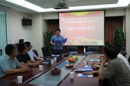 郝智山總經(jīng)理代表陜西善道大健康管理有限公司做了表態(tài)發(fā)言,首先介紹了公司的基本情況、經(jīng)營理念和近幾年取得的成績。他希望我校充分發(fā)揮技術(shù)、知識(shí)、人才優(yōu)勢,在合作研究方面取得新成果;為學(xué)生提供實(shí)習(xí)、就業(yè)崗位;同時(shí)為城鄉(xiāng)規(guī)劃與建筑工程學(xué)院在教學(xué)、科研、培訓(xùn)等方面提供一切便利條件。