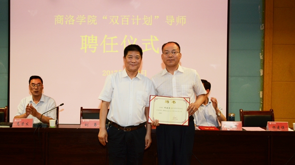 儀式上,范校長(zhǎng)為劉新民教授、楊建設(shè)教授頒發(fā)了“雙百計(jì)劃”導(dǎo)師聘書。