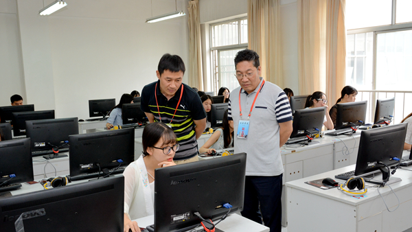 為了認真貫徹落實教育部、省高教工委、學校關(guān)于“2017年思想政治理論課教學質(zhì)量年”系列文件精神,深入推進我校思想政治理論課教育教學改革,6月19日上午,由教務(wù)處、思政部組織的首次思政課基礎(chǔ)知識機考考試在一號教學樓計算機機房進行。副校長劉勇在教務(wù)處、思政部、網(wǎng)絡(luò)中心負責人陪同下視察了機考考場,并對思政課教育教學改革進行了現(xiàn)場指導。