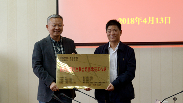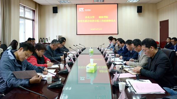 4月13日,“陜西省聯(lián)合培養(yǎng)研究生示范工作站”授牌儀式在我校舉行,校長范新會、西北大學副校長王正斌出席授牌儀式。我校與西北大學相關(guān)部門、學院負責人,以及我校相關(guān)學科教師代表參加了授牌儀式。授牌儀式由副校長劉寶盈主持。