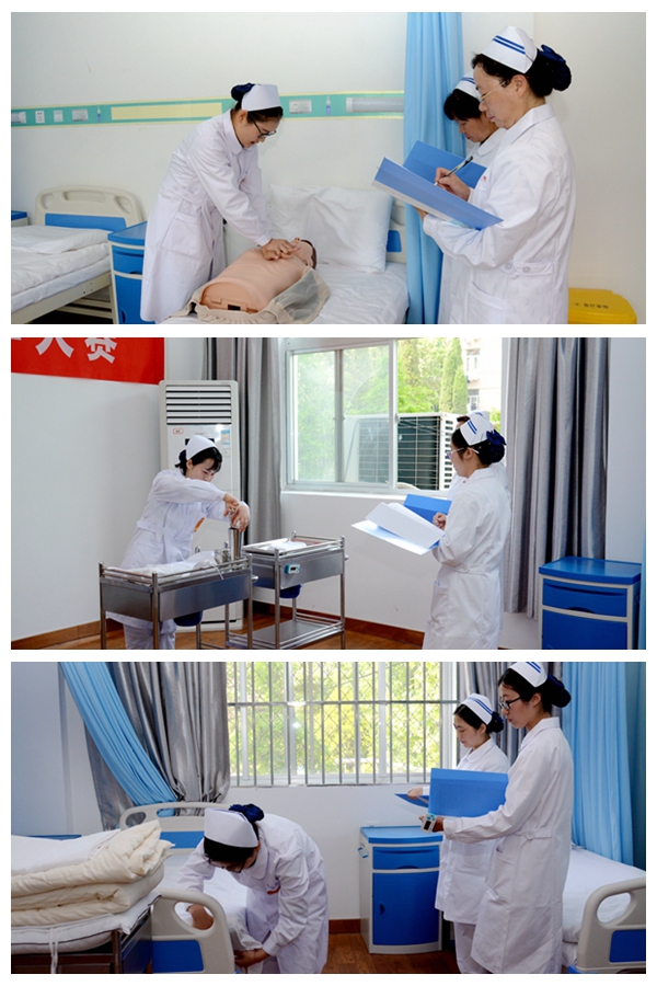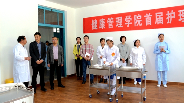 為紀(jì)念和慶?!?.12”國(guó)際護(hù)士節(jié),弘揚(yáng)南丁格爾精神,鞏固我校護(hù)理專業(yè)實(shí)踐操作技能,5月9日,我校健康管理學(xué)院舉辦首屆護(hù)理技能操作大賽。副校長(zhǎng)劉勇出席大賽,教務(wù)處相關(guān)負(fù)責(zé)人、健康管理學(xué)院院長(zhǎng)、護(hù)理專業(yè)全體教師參加了大賽。大賽還特邀商洛市中心醫(yī)院和商洛市中醫(yī)醫(yī)院3名主管護(hù)師擔(dān)任評(píng)委。