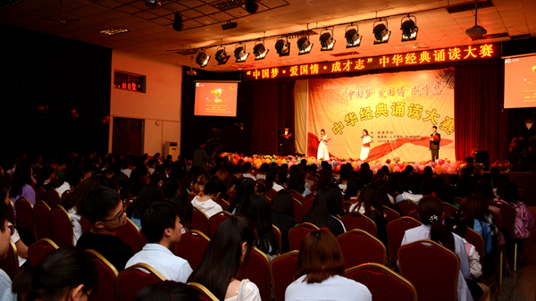 本次比賽以愛國主義教育為核心,以紀念我國改革開放40周年為主題,以中華優(yōu)秀傳統(tǒng)文化教育、社會主義核心價值觀教育、革命傳統(tǒng)教育為重點,培養(yǎng)學(xué)生“親近經(jīng)典、愛我中華”的真實情感。在各院初選、推送的基礎(chǔ)上,最終選出11個節(jié)目參加學(xué)校總決賽。