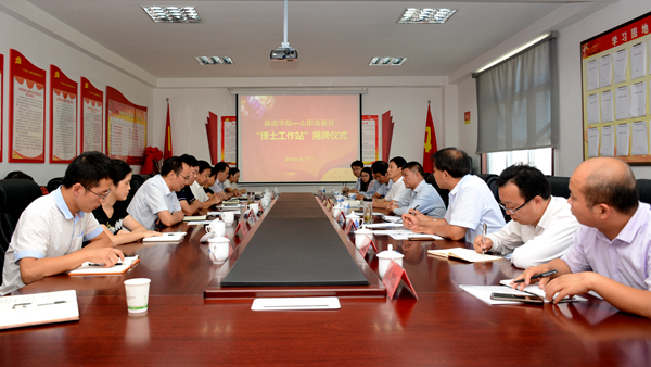 范新會、景小青共同為“博士工作站”揭牌。劉寶盈對我校與山陽高新區(qū)建立博士工作站做了詳細(xì)安排,冀博做總結(jié)講話,崔新成致歡迎詞,我校教師陳垚博士做了表態(tài)發(fā)言。