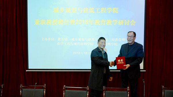 10月31日,城鄉(xiāng)規(guī)劃與建筑工程學(xué)院兼職教授聘任暨2018年教育教學(xué)研討會(huì)順利舉行,西安建筑科技大學(xué)白國(guó)良教授在會(huì)上受聘為我校兼職教授。校長(zhǎng)范新會(huì)出席聘任儀式并為白教授頒發(fā)聘書。校黨委委員、教務(wù)處處長(zhǎng)李超,校黨委委員、城鄉(xiāng)規(guī)劃與建筑工程學(xué)院院長(zhǎng)楊存典及人事處相關(guān)負(fù)責(zé)人參加了聘任儀式。聘任儀式由李超主持。