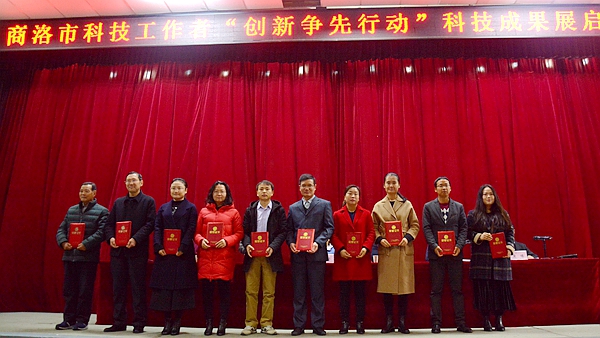 11月20日,商洛市科技工作者“創(chuàng)新爭(zhēng)先行動(dòng)”科技成果展啟動(dòng)儀式在我校舉行。市委常委、組織部部長(zhǎng)劉榮賢,我校校長(zhǎng)范新會(huì)、副校長(zhǎng)劉寶盈,市委組織部副部長(zhǎng)江長(zhǎng)海,市科協(xié)主席董紅梅,市科技局副局長(zhǎng)冀博出席啟動(dòng)儀式并為獲得優(yōu)秀科技成果獎(jiǎng)的人員頒發(fā)了榮譽(yù)證書。啟動(dòng)儀式由江長(zhǎng)海主持。