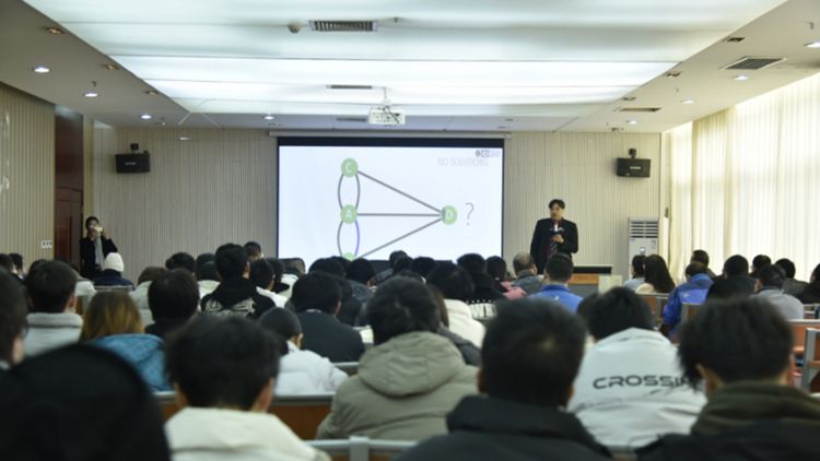 會后,泰國莊棚皇家大學(xué)工業(yè)技術(shù)學(xué)院助理教授Choat Inthawongse以《發(fā)現(xiàn)網(wǎng)絡(luò)科學(xué):第三個千年的交叉學(xué)科》為題,為電信學(xué)院、生物學(xué)院和化材學(xué)院師生作學(xué)術(shù)報告,并宣講了泰國國立莊棚皇家大學(xué)碩士培養(yǎng)項目。