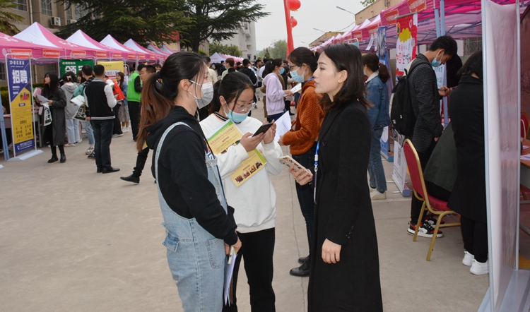 為更好地拓寬畢業(yè)生就業(yè)渠道,確保2021屆畢業(yè)生充分就業(yè)、穩(wěn)定就業(yè),4月10日,由陜西省教育廳主辦,商洛市人力資源和社會保障局、商洛市人才交流服務(wù)中心協(xié)辦,我校承辦的2021屆畢業(yè)生春季綜合類校園招聘會順利舉辦。校黨委副書記彭虎軍、商洛市人力資源和社會保障局及人才交流服務(wù)中心相關(guān)負責(zé)人深入招聘會現(xiàn)場指導(dǎo)工作。我校相關(guān)職能部門負責(zé)人,各二級學(xué)院黨總支書記、學(xué)工辦主任及畢業(yè)班輔導(dǎo)員全程參與并為畢業(yè)生提供就業(yè)指導(dǎo)服務(wù)。