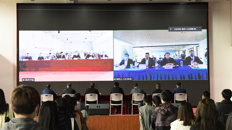 史淦寶向我校學(xué)生宣講了湖州市情和人才引進(jìn)政策。他表示,湖州民營(yíng)經(jīng)濟(jì)發(fā)達(dá)、營(yíng)商環(huán)境良好,真誠(chéng)歡迎我校優(yōu)秀人才前往湖州就業(yè)創(chuàng)業(yè)。