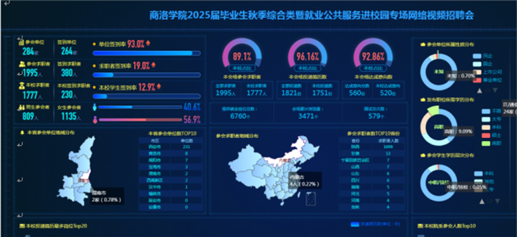 為做好我校2025屆畢業(yè)生就業(yè)工作,充分搭建用人單位和畢業(yè)生交流平臺,確保我校畢業(yè)生更加充分、更高質量就業(yè),11月20日,由省教育廳指導、省就業(yè)留學中心支持,我校和商洛市人社局聯(lián)合主辦,我校就業(yè)中心和商洛市人才中心承辦的2025屆畢業(yè)生秋季綜合類暨就業(yè)公共服務進校園專場網(wǎng)絡視頻招聘會依托貓頭英云人才市場順利舉辦。