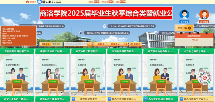 為充分做好我校2025屆畢業(yè)生就業(yè)工作,充分搭建用人單位和畢業(yè)生交流平臺(tái),確保我校畢業(yè)生更加充分、更高質(zhì)量就業(yè),12月25日,由省教育廳指導(dǎo)、省就業(yè)留學(xué)中心支持,我校和商洛市人社局聯(lián)合主辦,我校就業(yè)中心和商洛市人才中心承辦的2025屆畢業(yè)生冬季綜合類暨人力資源市場高校畢業(yè)生就業(yè)服務(wù)專項(xiàng)行動(dòng)網(wǎng)絡(luò)視頻招聘會(huì)依托貓頭英云人才市場順利舉辦。