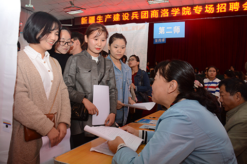 10月17日,由新疆生產(chǎn)建設(shè)兵團(tuán)13個(gè)師30多個(gè)團(tuán)場(chǎng)及企業(yè)組成人才招聘團(tuán)來我校舉辦專場(chǎng)招聘會(huì)。我校畢業(yè)生、商洛職業(yè)技術(shù)學(xué)院畢業(yè)生參加專場(chǎng)招聘會(huì),部分學(xué)生現(xiàn)場(chǎng)與用人單位簽約或達(dá)成就業(yè)意向。