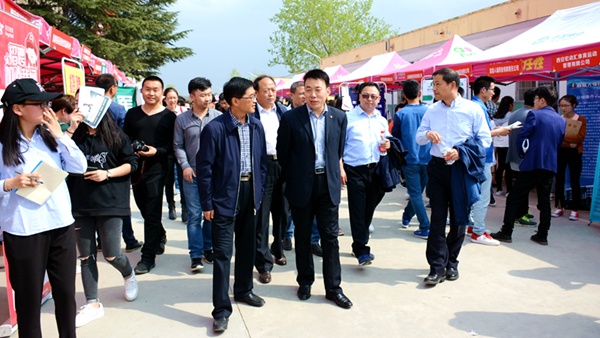 在學(xué)生處、團(tuán)委等部門(mén)負(fù)責(zé)人的陪同下,彭虎軍與用人單位領(lǐng)導(dǎo)、參會(huì)學(xué)生親切交流,了解用人單位人才需求、招聘情況和學(xué)生應(yīng)聘求職情況;同時(shí)要求各相關(guān)部門(mén)要認(rèn)真、熱情、周到做好接待服務(wù)工作,搭建高質(zhì)量就業(yè)平臺(tái)。