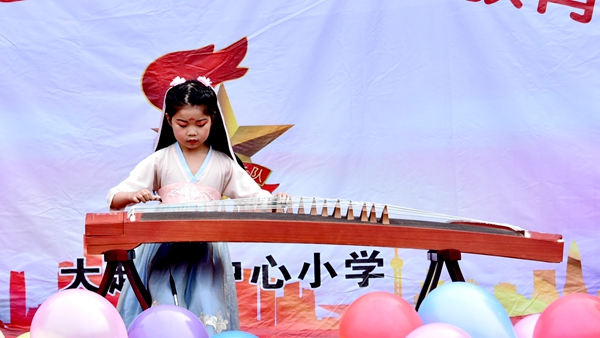 活動現(xiàn)場,志愿者們精彩紛呈的文藝演出給孩子們送去了節(jié)日的歡樂和祝福,其中,舞蹈《出水蓮》婀娜多姿、清新高雅,用曼妙的舞姿將孩子們從炎炎夏日領進清風徐徐的蓮花池中;合唱《同一首歌》悠揚動人、情感真摯,孩子們也紛紛加入合唱,掌聲、歡呼聲不斷。小學生們的表演也亮點不斷,活力四射的舞蹈、深邃悠揚的古箏演奏、聲情并茂的詩歌朗誦,現(xiàn)場歡聲笑語、氣氛熱烈。