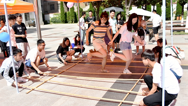 ——舉辦素質(zhì)拓展活動,傳承體育文化精神。在校體育場開展以“卓越團隊,共贏未來”為主題的素質(zhì)拓展活動?;顒庸苍O(shè)置了珠行萬里、搭橋過河和踩氣球三個項目。各組成員滿懷激情,奮力拼搏,用平穩(wěn)的心態(tài)和良好的協(xié)作能力完成了各項比賽,深化大學生“走下網(wǎng)絡(luò),走出宿舍,走向操場”主題課外體育鍛煉活動,將德育與智育、體育、美育有機結(jié)合,寓思想政治教育于體育文化活動中,強化校訓(xùn)校史育人功能,營造了良好的校風和學風。