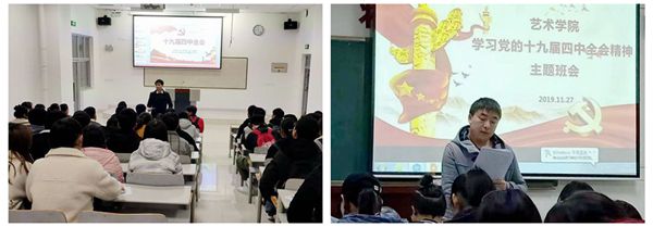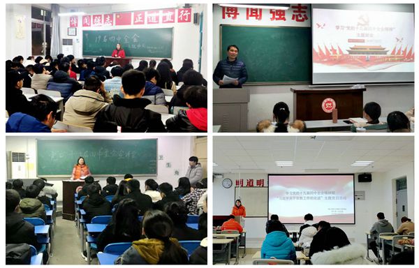 按照學(xué)校黨委的部署和學(xué)工部的統(tǒng)一安排,11月27日晚,我校全體輔導(dǎo)員深入班級(jí),通過舉辦主題班會(huì)等形式,向?qū)W生宣講黨的十九屆四中全會(huì)精神,對(duì)學(xué)生開展制度自信教育。